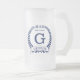 Ces verres à bière en verre givré de 16 oz. sont un excellent cadeau pour le témoin de votre mariage. Ils sont traditionnels mais modernes avec une couronne de laurier bleue et une bannière avec la date du mariage, le titre / poste et la première initiale et le prénom, le tout en bleu. Ils seraient parfaits pour un enterrement de vie de garçon ou un week-end.