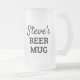 Personnalisé Mens Frosted Glass Beer Mug fait une excellente idée cadeau pour un buveur de bière. Les deux côtés de la tasse ont un nom en caractères noirs, suivi de "Beer Mug" en caractères noirs gras. Cela peut être donné comme un cadeau d'anniversaire, de Fête des pères ou de Noël.