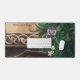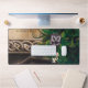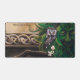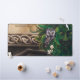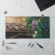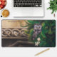 Un homme vert avec une chouette chou mignonne assise sur une branche. Un mur de travail en pierre à noeuds derrière eux.