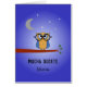 Une carte Good Luck en espagnol, montrant une chouette portant des lunettes surdimensionnées et assise sur la branche d'un arbre contre un ciel nocturne. Le message d'accueil est "Mucha suerte" ou vous pouvez le modifier pour convenir, et vous pouvez ajouter le nom ou le texte supplémentaire dont vous avez besoin. A l'intérieur, le message est écrit sur un arrière - plan bleu clair et est également prêt pour la personnalisation : "Mucha suerte en el examen. Espero que todo vaya bien". (="Bonne chance à l'examen. J'espère que tout va bien."