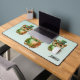 Tapis de bureau avec une merveilleuse illustration fantaisiste. Un grand hibou brun aux yeux portant un chapeau vert et une cravate d'arc.