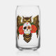 Un grand hibou brun à cornes avec un jour de crâne de sucre mort et de roses rouges