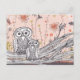 Un support original, mélangé, dessin de chouette créé à l'aide de peinture, crayon et encre puis scanné sur différents arrière - plans. Une carte postale pour les amateurs de chouettes.