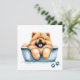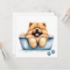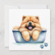 Niedlicher Hund Aquarellbild eines glücklichen, flauschigen Chow Chow Hundes in einer Badewanne. Ideal für Hundefreunde.