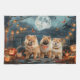 Entfesseln Sie den unheimlichen Geist mit diesem unheimlichen Halloween-Design, das eine Hundepackung unter einem dunklen, mondbeleuchteten Himmel bietet, umgeben von fliegenden Fledermäusen und glühenden Kürbissen. Ideal für diejenigen, die mit ihren wütenden Freunden eine Touch voller Furcht Liebe haben!