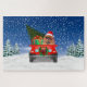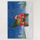 Chow Chow Hund im Schnee mit Weihnachtsmannmütze und Weihnachtsgeschenke ist eine perfekte Weihnachtsgeschenkidee für jemanden, der diese Hündin züchten Liebe.