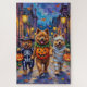 Adorable Chow Chows, gekleidet in spielerischen Halloween-Kostümen, tragen Kürbiseimer, während sie unter dem mondbeleuchteten Himmel tricksen oder sich behandeln. Dieses festliche Design hebt den flauschigen Mantel der Rasse, die lionartige Mähne und die würdige Persönlichkeit hervor und prägt perfekt die spöttische, aber fröhliche Atmosphäre der Halloween-Nacht. Eine wunderbare Feier für Hundefreunde und Halloween-Fans gleichermaßen.