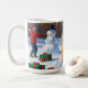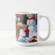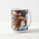 Chow Chow läuft im Schnee mit Weihnachtsmütze Kaffeetasse