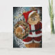 Chow Chow portant un chapeau santa et un costume père Noël tout en tenant une couronne de Noël éclairée vous souhaitant, ainsi qu'à votre famille, un joyeux Noël... grande carte de Noël pour les amoureux de les chiens et les gens de Chow Chow.