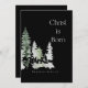 Christlich Christus ist geborene Weihnachtskarte. Krippe. Wasserfarbene Wälder Bäume. Hirsch. Schwarz.