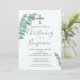 Eine weiche Eukalyptus-Blätter und Filialfeiern oder Taufe. Das Design ist grün und weiß mit einem Text, der leicht auf Ihre Informationen geändert werden kann. Wählen Sie aus einer Reihe von Papiertypen.