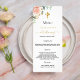 Carte de menu Christening réception. Personnalisez et ajoutez un nom, une date et le menu. Un arrière - plan blanc chic. Décoré d'un or rose couleur eau et rose rose rousse et feuilles d'eucalyptus vert, sprigs, verdure, faux feuilles or. Une fausse croix d'or.