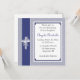 Elegante religiöse Einladung im Parwinkle Polka Punkt Hintergrund mit seitlichem Rand und verziertem Kruzifix mit Schmetterlingen verziert. Einladungen sind einfach zu individualisieren und mit Umschlägen und Ihrer Wahl von Papier zu ergänzen.