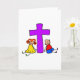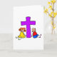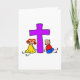 Niedlicher Cartoon skurrile Abbildung eines kleinen Mädchens und Jungen, das neben einem Riesenkreuz sitzt. Bilder auf verschiedenen Geschenken und Produkten erhältlich. Leid die kleinen Kinder, zu mir zu kommen, und verbiete ihnen nicht: Denn von diesem ist das Reich Gottes - Mark 10v14