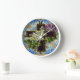 Wanduhr für christliche Glaubensgestaltung mit Blumenbedruckung auf blauem und goldfarbenem Hintergrund