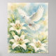 Diese friedliche Wasserfarben-Wandkunst zeigt eine weiße Taube, die über blühenden Lilien fliegt, und symbolisiert Hoffnung, Frieden und neues Leben in Christus. Ohne Text ist dieses Kunstwerk perfekt für glaubensbasierte Heimdekoration, Gebetsräume, Kinderzimmer oder als sanfte Erinnerung an Gottes Gegenwart während des Frühlings und der Osterzeit. Ein schöner christlicher Kunstdruck zum Ausstellen oder Verschenken.
