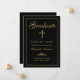 Senden Sie Ihrer Familie und Ihren Freunden eine Christliche Ankündigung mit einem schwarzen Hintergrund mit Imitaten goldenen Kalligraphie und grenzt an einen dünnen goldenen Rahmen. Personalisieren Sie Ihre Abschluss-Daten. Entworfen von Susan Coffey.