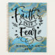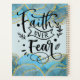 Individuelles Namensdesign für ein personalisiertes inspirierendes Geschenk mit dem Zitat "Glaube über Angst", in der modernen handgeschriebenen Typografie, mit einem abstrakt agatähnlichen Effekt aus Alkoholfarbe in Blau, Grau und Gold.