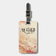 Das Gepäckschild zeigt einen abstrakten Aquarellhintergrund mit alten Musikblättern. Es enthält ein inspirierendes Christliches Zitat, "Made to Worship".