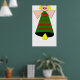 Dieses lustige festliche Poster mit einem hübschen Weihnachtsgel mit blondem Haar, blauen Augen und einem großen Lächeln. Ihr Körper ist eine festlich grüne und rote Glocke mit einem gelben Klapper am unteren Ende. Dieses Poster ist ideal für die Dekoration Ihrer Zuhause oder Ihres Büros zu Weihnachten.