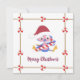 Zwei Absätze des personalisierten Textes markieren die Rückseite dieser niedlichen Bluebird-Urlaubskarte. Die kleine Fella ist gerahmt von gestreiften Weihnachtsbonbons.