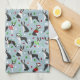 Niedliche Weihnachten Boston Terrier Hunde in festlichen Urlaubssoutien. Boston Terriers mit schwarz-weißen Mänteln halten Süßspeisen, tragen Weihnachtsmannmützen, Geweih, Pullover mit verstreuten Ziergegenständen.