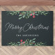 Custom-designed Christmas doormat featuring rustic elegant winter botanicals design.