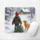 Christmas Boy Dragging an Evergreen Tree Home Mousepad