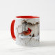Bring warmth and wonder to your mornings with this stunning Christmas Cardinal Mug. Featuring a pair of vivid red cardinals perched in a snowy birch forest scene, the design appears to peek through a rustic, cracked wall — creating a charming 3D illusion. With its red handle and interior, this mug beautifully complements the festive artwork, making it a perfect holiday gift for bird lovers or anyone who cherishes the peaceful magic of winter mornings.