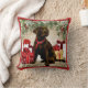 Schönes Schokoladenlabrador auf einem Weihnachtskissen.
