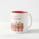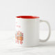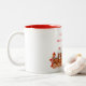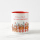 This ceramic coffee mug is shown in a festive holiday Christmas candy cane express print.
