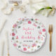 This elegant and festive plate features watercolor hot cocoa, gingerbread cookie jar, pink poinsettia flowers, holly berries and foliage. The text combines handwritten script and sans serif fonts for a stylish and modern look. This is perfect for Christmas birthday parties.