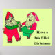 Zwei niedliche Weihnachtselfen machen einen Urlaub auf diesem lustigen Poster des Künstlers Jo-Ann Hayden