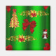 A cute Christmas design featuring a pattern of Christmas decorations including gold Christmas trees, gold holly and red berries, red silk bows and an adorable snowman dressed in red velvet top hat and vest, all on a green background to add some Christmas cheer to your home over the holidays.