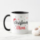 Mug de Noël moderne pour tout Diva sassy. La citation "Christmas Diva" est dans une belle typographie de script moderne rouge et noir avec un casquette Père Noël accroché sur le "Ch" de Noël. Magnifiquement entouré de charmants flocons de neige.