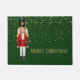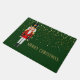 Doormat mit einem tiefen grünen Hintergrund und einem festlichen Weihnachts-Nussknackdruck und matte goldene Textfarbe. Passen Sie diese Matte an oder kaufen Sie, wie es ist.