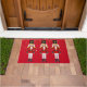 Doormat wird mit einer roten Hintergrundfarbe und einem festlichen Weihnachts-Nussknackdruck gezeigt. Passen Sie diese Matte an oder kaufen Sie, wie es ist.