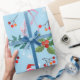 Christmas flamingos and holly on blue pattern geschenkpapier
