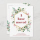 Diese wunderschöne, sich bewegende Ankündigung bietet ein geometrisches Imitat mit goldenen Rahmen, passenden goldenen Blätter, elegantem Weihnachtsgrün und roten Heiligbeeren auf einem modernen, weißen Hintergrund. Trendy, tiefrote whimsikale Typografie sagt: "Ich habe mich bewegt." Die perfekte Art, Ihren Freunden ein frohes Weihnachtsfest von Ihrer neuen Zuhause zu wünschen!