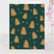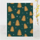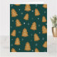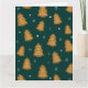 A cozy pattern featuring gingerbread Christmas trees with icing details, scattered stars, and dots, set against a deep green textured background.