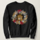 Stylish CHRISTMAS Glitter Realtor Client New Home Ugly Christmas Sweatshirt, designed for realtors to wear during the festive Christmas season. TEXT IS CUSTOMIZABLE so you can personalize the wording to suit your corporate branding. The text reads HAPPY HOLIDAYS, BLESSINGS ON YOUR NEW HOME. The image shows a faux gold glitter house with white typography inside a Christmas wreath. The O of HOME is replaced with a key. Matching items available so you can create awesome corporate gift sets for your clients. And look the part during the festive season.