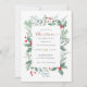 This invitation features a festive watercolor Christmas greenery design with elegant holly leaves, pine branches, and seasonal botanical details. The classic holiday color palette combined with a soft hand-painted style creates a warm, inviting, and timeless look.