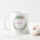 This mug features an elegant Christmas watercolor greenery design with festive pine branches, eucalyptus leaves, and red berry accents. The hand-painted botanical style creates a warm, cozy, and timeless holiday feel.