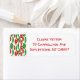 Diese Rücksendeadressen-Aufkleber haben ein sich wiederholendes Ovalbild in Rot und Grün mit verstreuten weißen Ovalen, die alle auf einem weißen Feld stehen. Ideal für Ihre Weihnachtskarten!