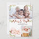 "Christmas Merry n Bright Script Calligrafy Foto Collage Card mit Family message." Schrift-Handschrift in rot bordeauxrot mit Rose Gold Glitzer Tropfen Schatten-Highlights, Ihre Familienbotschaft, Name und Jahr Set Ihrer Lieblings-Familie Fotos und ist sicher, zu einer wertvollen Erinnerung von allen, an wen Sie sie senden. Einfache, helle und luftige Aquarellbilder von Beeren und Blattwerk wurden von Audrey Jeanne Roberts, einem international anerkannten Künstler und Designer, gemalt.