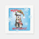 Feiern Sie die Urlaubssaison mit einem niedlichen Miniatur Schnauzer Welpen mit einem Strumpf Hut und Schal inmitten einer Schneeflocke. Gute Ferien!