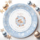 Ein kleines Reh ist fast hier! Baby Shower Paper Teller mit einem niedlichen, im Winter schlafenden Baby Reh im Kranz gemacht mit Lebkuchen & Winterbeeren in Blau, Weiß und Beige. Kate Eden Art