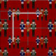 Weihnachts Nutcracker Trio (zazzle Stoff) - Ein grafisches Kunstdesign mit drei Nussknacksoldaten, die nebeneinander stehend sind. Jede Uniform und Hut sind einzigartig. Ein Soldat trägt blau und weiß. Ein Soldat trägt Rot und Gold. Der letzte Soldat trägt grün und silber. Die Soldaten sind gefliest, um ein Allover-Hintergrundmuster zu schaffen. Ich habe die Soldaten auf einen roten Hintergrund gestellt. Das Design ist mit verschiedenen Hintergrundfarben erhältlich. Wählen Sie aus sieben Zazzle-Stoffen für Ihre Näh-, Krafts- und Quiltierprojekte.