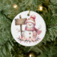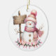 This ceramic Christmas ornament is shown with a cute festive snowman art print.