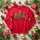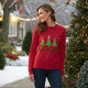 The t-shirt design focuses on a vibrant red color that highlights the Christmas festivity. In the central part, three charming green Christmas trees stand out, each decorated in a unique and charming way. The combination of these trees creates a cozy and happy atmosphere. Complemented by matching leggings in a similar red hue, this Christmas pajama set invites you to enjoy the season in comfort and style.